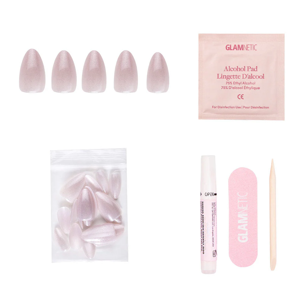 Get the princess treatment with the SeleniteĀ Nail Set. This trendy, yet timeless style features a semi-transparent, subtle sparkly white hue in a luxe, glossy finish you'll love. Plus, our always in-demand short almond shape instantly elevates your weekday to weekend looks.